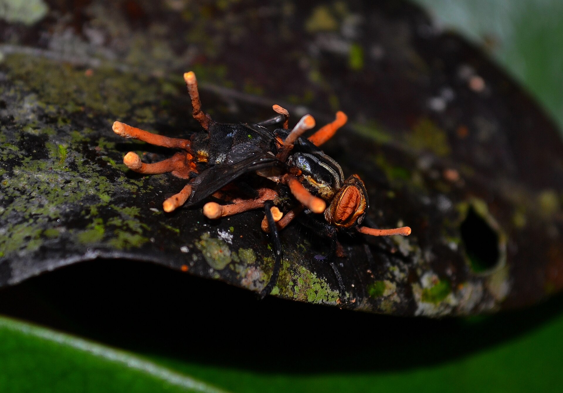 Houba cordyceps je známá pro svůj opravdu netradiční životní cyklus, který počíná infikací larev řady druhů hmyzu, pavouků a stonožek. Následně houba roste v těle hostitele a konzumuje jej zevnitř, než z něj začne vyrůstat jako hříbek zpoza pařezu. Na rozdíl od hřibu, který ale prostě vyroste a následně vypustí spóry, které poté neseny větrem vedou k šíření podhoubí a dalším hřibům, cordyceps infikovaný hmyz doslova zombifikuje, ovládne jejich motorické funkce a tak se postará o optimální distribuci spórů a následnou propagaci sebe sama. Hostitel vyleze na vysoké a příznačné místo, kde nakonec vypustí spóry a infikuje další hmyz. Scénář jako vystřižený z hororu a skutečně inspirovaný touto houbou byl i seriál a hra The last of us. Naštěstí pro nás je tento přes 99 miliónů starý evoluční proces šíření specifický pouze na hmyzí říši, na rozdíl od zmutovaného cordycepsu z tohoto díla fikce.